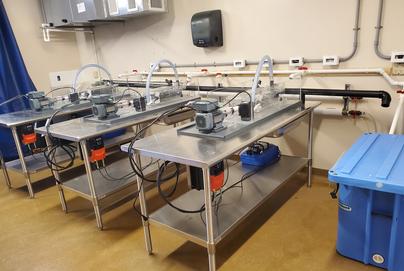 - 3 x Loligo 10L swim tunnel respirometers - plumbed for full recirculation